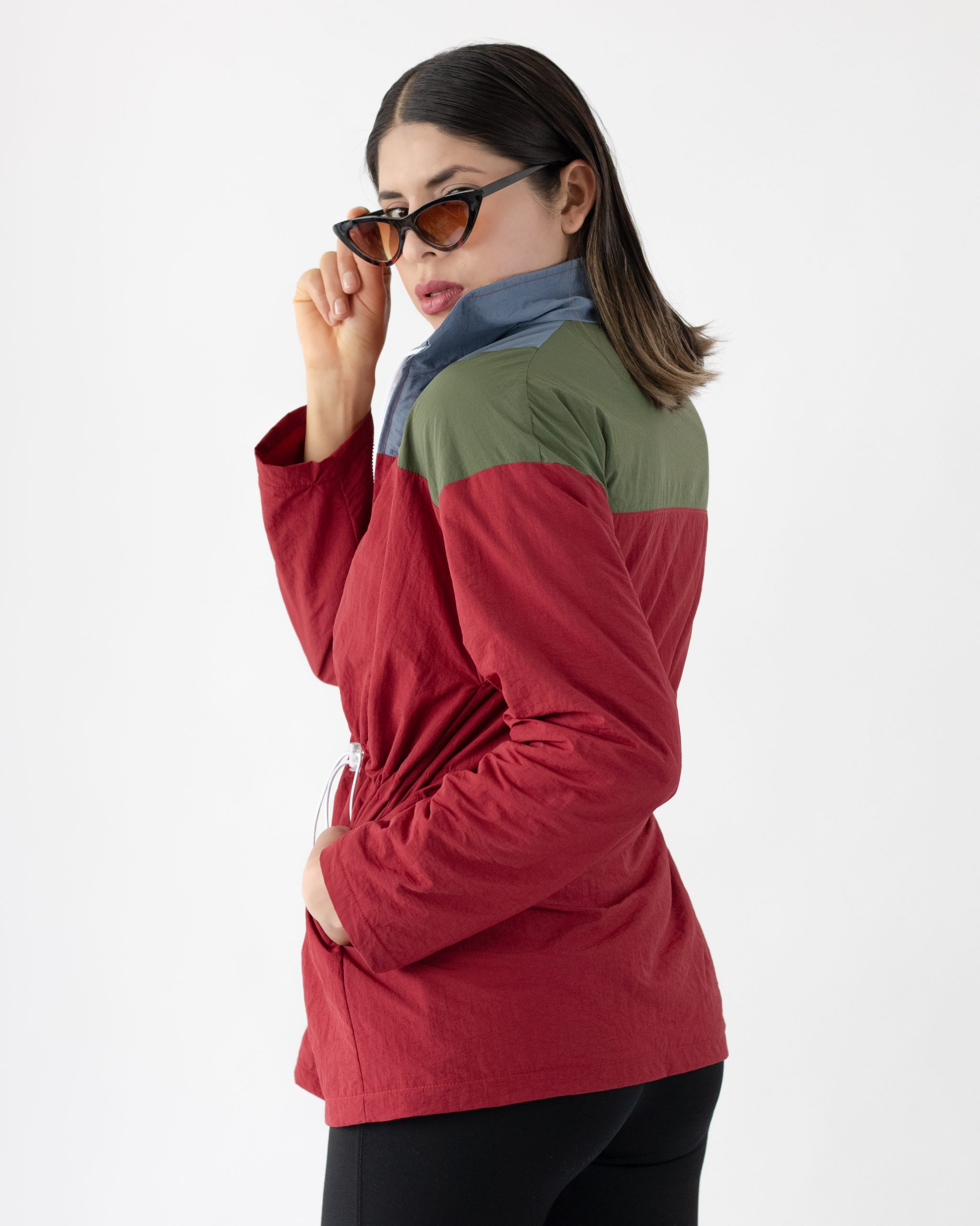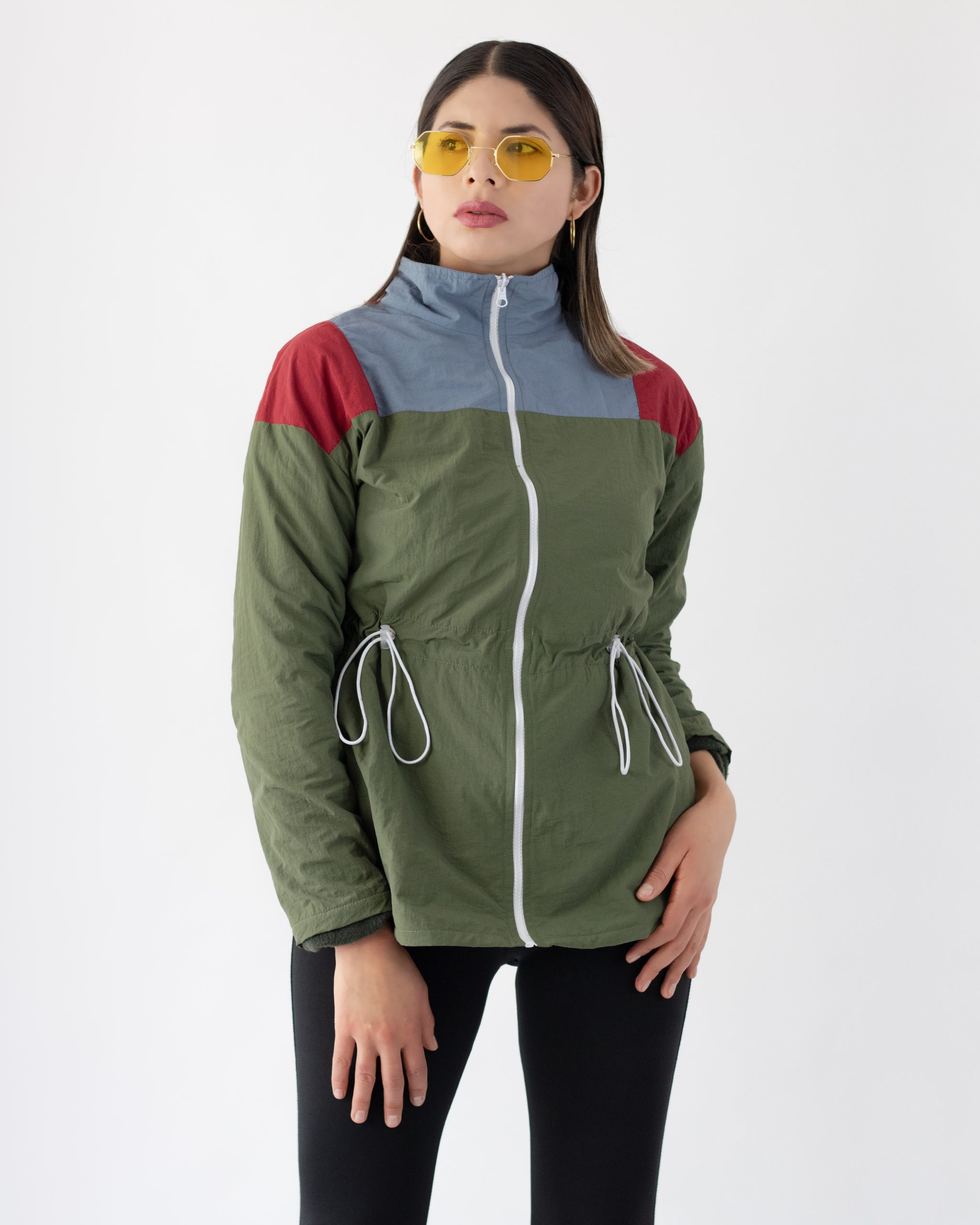Casaca elaborada en tela taslan corrugado con forro de micropolar, elástico regulable en la cintura.